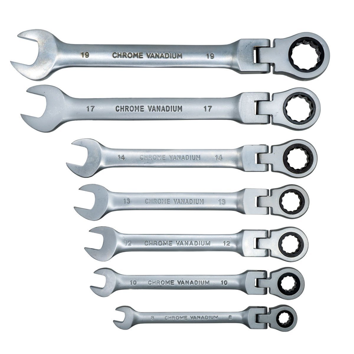7 parçadan oluşan mafsallı cırcır kombine anahtar takımıdır.