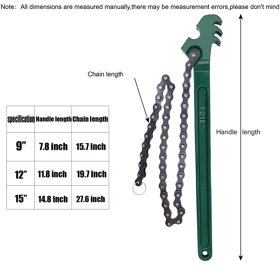 8 İNÇ YAĞ FİLTRE SÖKME ANAHTARI. – SAP UZUNLUK : 20 CM. – ZİNCİR UZUNLUK 40 CM. – KAVRAMA ÇAPI 130 MM