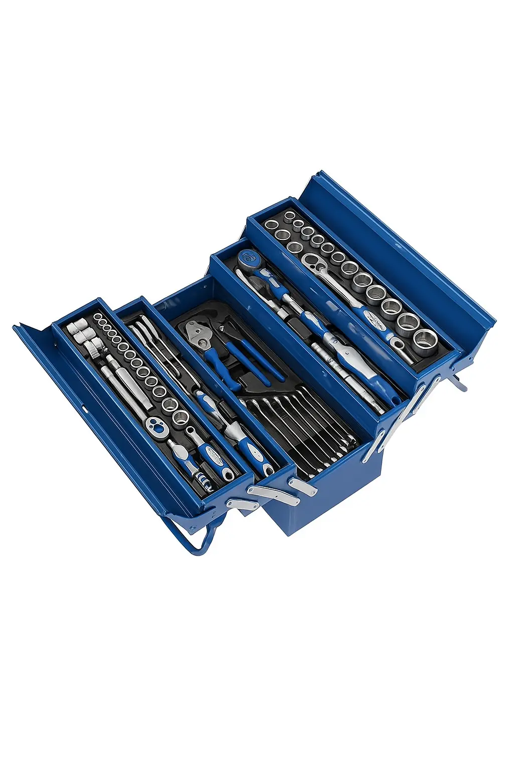 86 Parça Profesyonel Sandık Tipi Takım Çantası Seti, tamir, bakım ve montaj işlerinde ihtiyacınız olan tüm el aletlerini tek bir kutuda toplar. Hem amatör kullanıcılar hem de profesyoneller için tasarlanan bu kapsamlı set, yüksek kaliteli malzemelerden üretilmiş dayanıklı el aletleri ile uzun ömürlü kullanım sağlar.