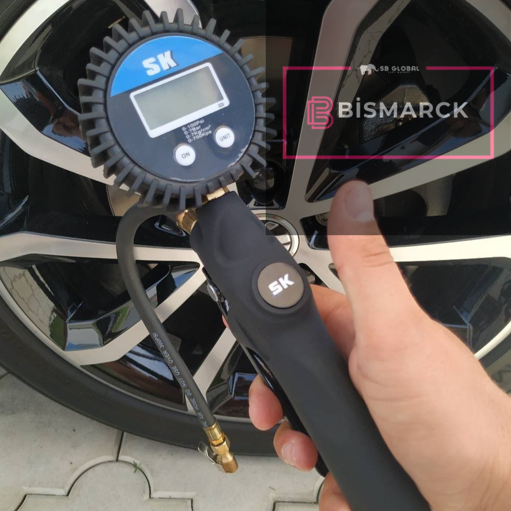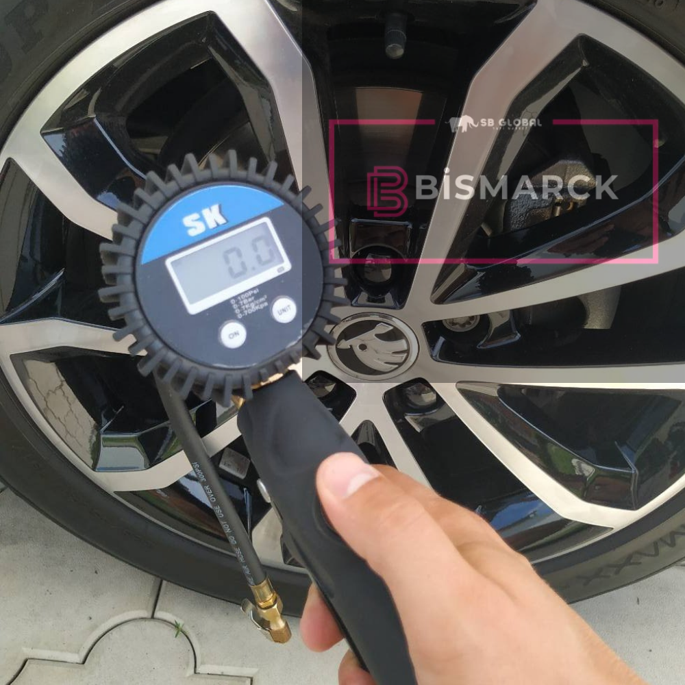 Lastik basıncını doğru bir şekilde izlemek için basınç göstergesi.