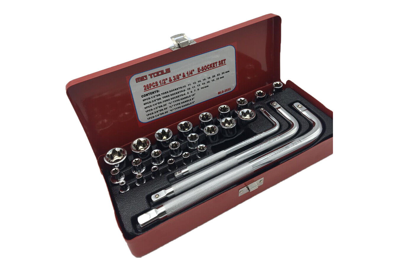 İÇİNDEKİLER: 9 PARÇA 1/2 E LOKMA – 10-11-12-14-16-18-20-22-24MM 8 PARÇA 3/8 E LOKMA -8-10-11-12-14-16-18-20MM 6 PARÇA 1/4 E LOKMA 4-5-6-7-8-10MM 1/4 L KOL 6” 3/8 L KOL 8” 1/2 L KOL 10′ 26 PARÇA 1/2-3/-8-1/4 E LOKMA TAKIMI (E-SOCKET SET)