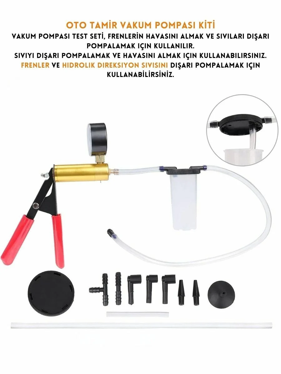 Fren Hava Alma Vakum Pompası Seti NTA998A, araç fren sistemlerindeki havayı etkili bir şekilde tahliye etmek ve vakum testleri yapmak için tasarlanmış profesyonel bir settir. Ergonomik tasarımı ve dayanıklı yapısı ile uzun ömürlü kullanım sağlar. Fren bakımı ve test işlemlerini hızlı ve kolay hale getirerek iş gücünden tasarruf etmenize yardımcı olur. Set, farklı araç modelleriyle uyumlu ekipmanlar içerir ve tamirhaneler, atölyeler ya da bireysel kullanım için idealdir.