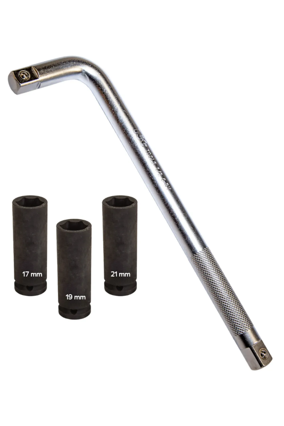 4 Parça 380 mm Lastik Bijon Anahtarı, pratik ve dayanıklı yapısıyla araç lastik değişimlerinde profesyonel çözümler sunar. 17 mm, 19 mm ve 21 mm lokma uçlarıyla geniş uyumluluk sağlar. Çelik malzeme ve ergonomik tasarımı sayesinde uzun ömürlü ve rahat kullanım imkânı sunar. Araç bakım çantanızda mutlaka bulunması gereken bu set, hem amatör kullanıcılar hem de profesyoneller için idealdir.