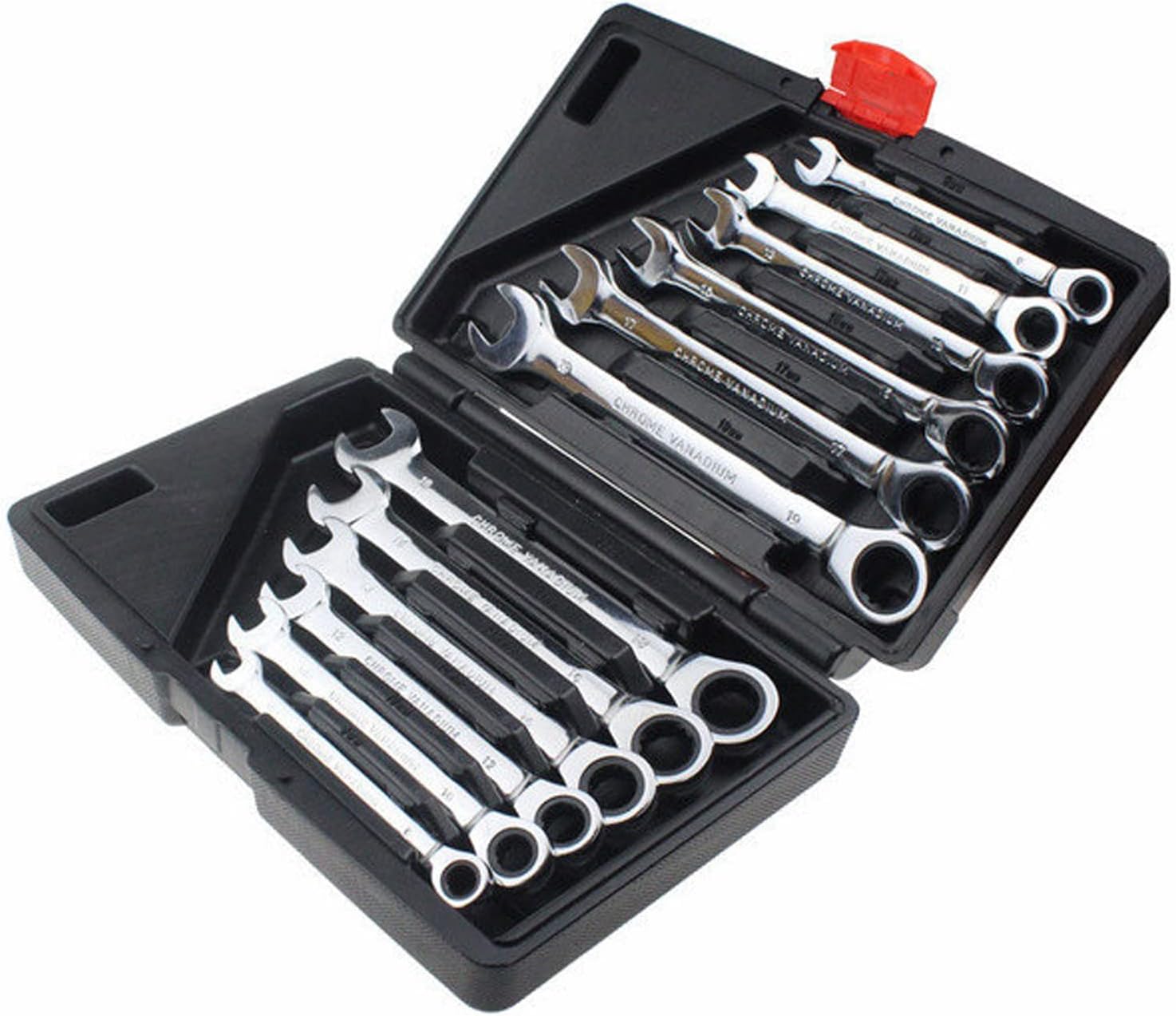 Fürth Kilitleme ı Seti, 12 Adet Krom Vanadyum Çelik 8-19mm Esnek Kafa ve Sabit Kafa Çift kullanımlı Cırcır ı Hızlı Garaj Aletleri Organizatör Kutusu ile 72 Diş DOOMUN