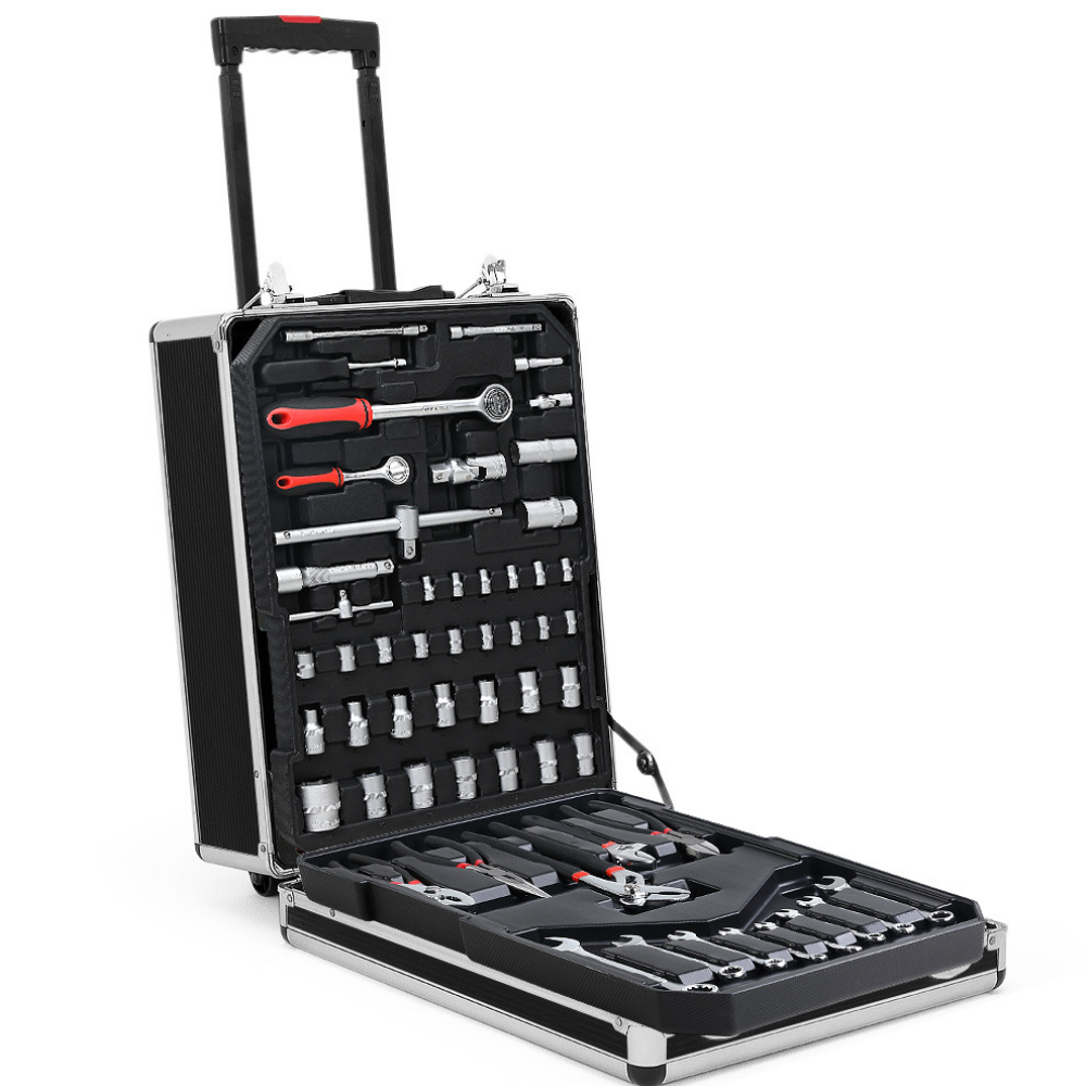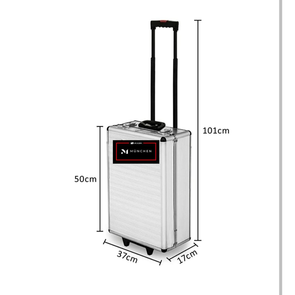 MÜNCHEN alüminyum alet arabası her şeye sahiptir. 899 parça ile tüm aletlere hızlı ve rahat bir şekilde sahip olursunuz. Dört pratik ve çıkarılabilir çekmece, aletleri hızlı ve iyi bir şekilde ayırmanıza olanak tanır. Kasanın altındaki makaralar ve pratik, uzatılabilir teleskopik sap, aletlerinizle hareket etmenizi ve hızlı bir şekilde kullanıma hazır olmanızı sağlar. Çantayı evde veya ötesinde kullanın: atölye, araba veya bisiklet için.