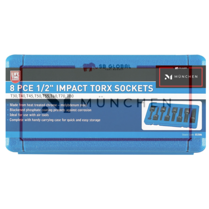 MÜNCHEN 8 PARÇA 1/2 DRİVE IMPACKT TORX BİT LOKMA TAKIMI T30-T80