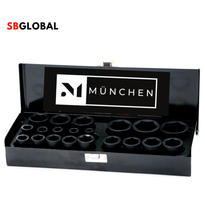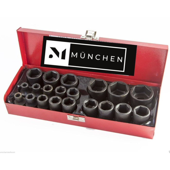 UYARI ! Bu Ürün SB GLOBAL YAPI MARKET’in MÜNCHEN markalı ürünüdür , Sadece SB GLOBAL YAPI MARKET SATICISINDAN SATIN ALINIZ ! Kırmızı metal kutulu 1/2″ Darbeli Kısa Lokma Seti Metal Kutulu 8-32mm 20 Parça Set 8,9,10,11,12,13,14,15,16,17,18,19,20,21,22,23,24,27,30,32mm